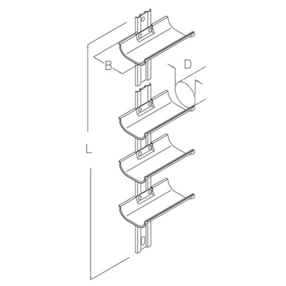 The KTW-R 10 cable support tray with riveted back rail is used for routing cables on walls in a space-saving manner. It is available in a width of 118 mm and for cable diameters of 100 mm. It can be installed in one or more tiers. It is dowelled directly to the wall, but can also be attached to profile rails. Support intervals of 700 to 1000 mm must be observed when routing the cables. The cable support tray KTW-R 10 is made of hot-dip galvanised steel.