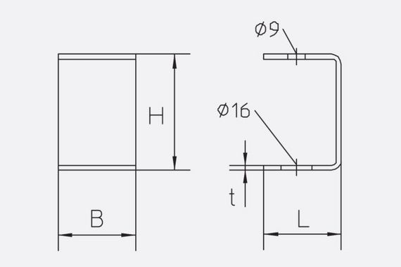 The mounting bracket KPB is used to suspend the light rail system along with a tube with an armoured thread (PG) 9. The bracket is attached to the ceiling using dowels. It is made of hot-dip galvanised steel.