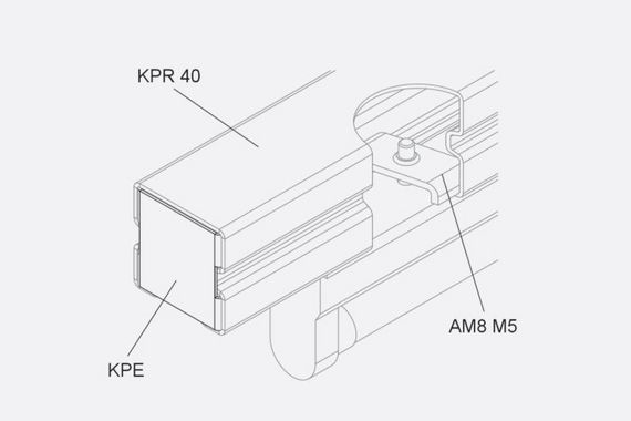 The end cap KPE closes the KPR support rail for light fittings and protects it from dirt. It is made of sendzimir hot-dip galvanised steel.