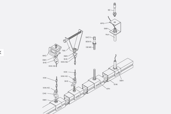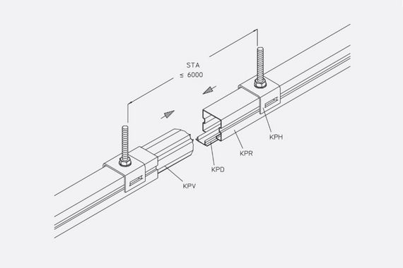 The KPR 40 support rail for light fittings is used to suspend linear or strip lights. It is available in lengths of 3000 and 6000 mm, is 40 mm high and 40 mm wide. The rail is made of sendzimir hot-dip galvanised steel.