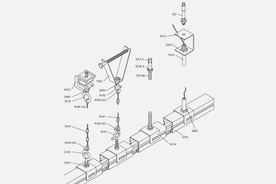 The flat lock nut SMH is used when suspending light rail systems. It is made of galvanised steel.